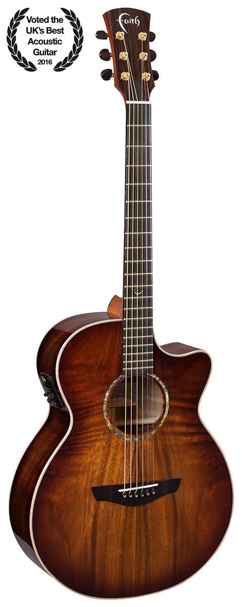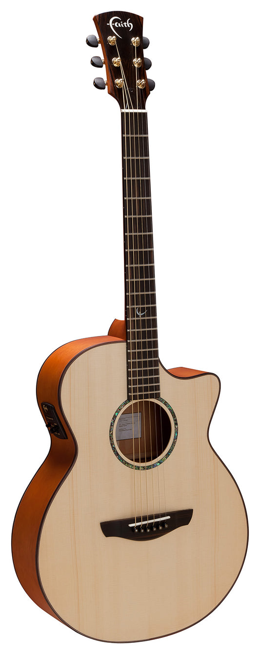 Founded in 2002, Faith Guitars are the passion of a small team of seasoned guitar experts based in Shropshire, England and led by world-renowned British luthier, Patrick James Eggle. Solid wood is central to the sound of all Faith Guitars with the tone capable of maturing and improving over time. With carefully thought-out selection in wood choices, Faith Guitars are crafted in the same way of a sculpture, with a clear view of the end goal first before selecting the appropriate tonewoods, bracing patterns and touch-point materials, creating a piece that is both highly desirable and highly functional.