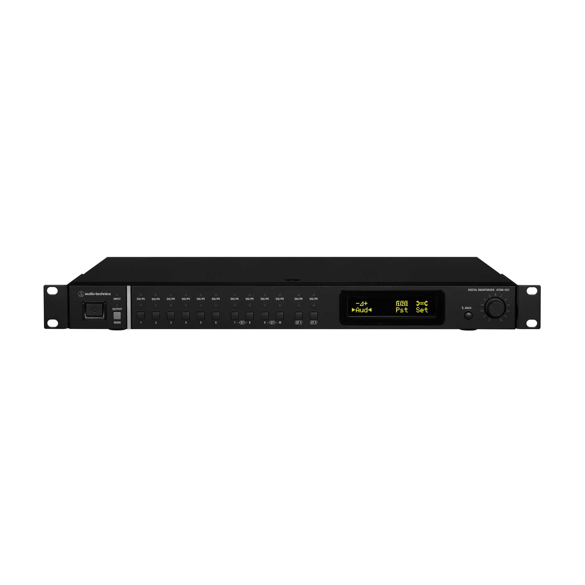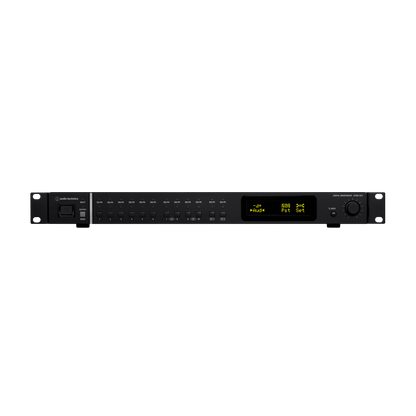 The ATDM-1012 is a 14 input / 12 bus matrix mixer featuring 10 mic/line inputs with high-quality preamps, two stereo line inputs, USB audio I/O, eight balanced outputs and two unbalanced stereo outputs. Ten additional digital inputs can be added either via an AT-LINK digital connection or over Dante – available with the Dante-enabled ATDM-1012DAN version.