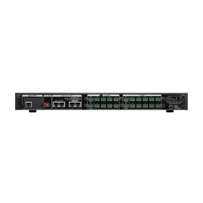 Each input channel is equipped with phase inversion, low-cut filter and a four-band parametric EQ. Inputs can be routed through the routing matrix to any of the 12 busses, which each feature independent volume settings. The ATDM-1012’s smart mixing capabilities offer four mixing groups that can either be gain sharing or gating mixers. Additionally, ten Acoustic Echo Cancellation (AEC) processors, ten compressors/de-essers and eight feedback suppressors can be freely assigned to any of the input or output channels to ensure maximum audio quality at all times.