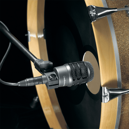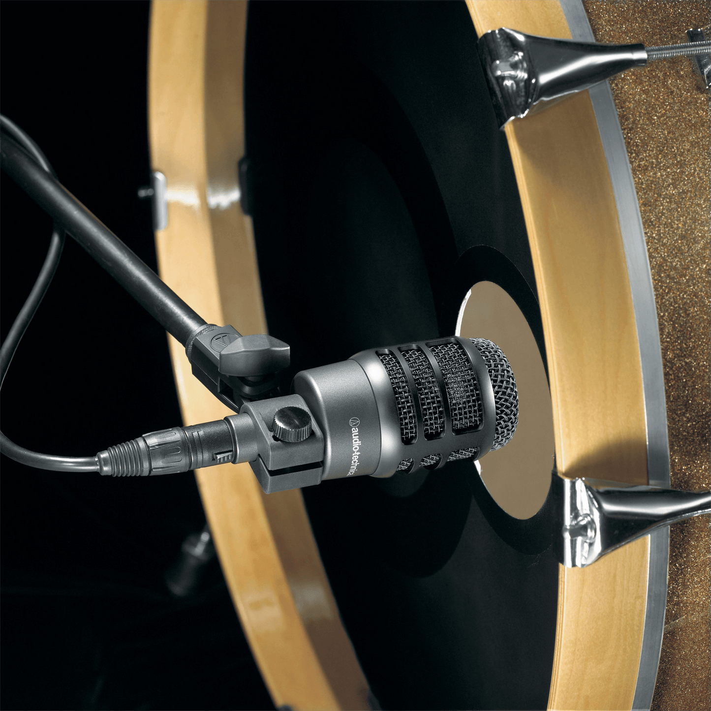 A natural with high SPLs, the ATM250 hypercardioid dynamic is tailored for kick drum, percussion, brass and other highly dynamic instruments. Its rich, warm low-frequency response gives the microphone excellent presence. The microphone is equipped with a rare earth neodymium magnet and a tight hypercardioid polar pattern. Includes a professional isolation clamp to provide secure mounting, versatile positioning and effective dampening of unwanted mechanical noise.