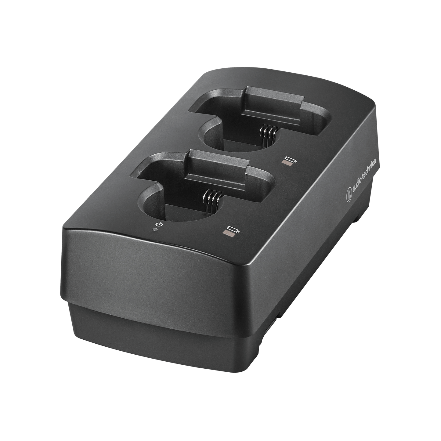 - Two-bay charging station for use with 3000 Series (fourth generation) handheld (ATW-T3202) and body-pack (ATW-T3201) transmitters