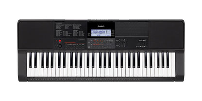 With 600 sounds and 195 rhythms on tap, the CT-X700 is a 61-key arranger keyboard that gives you the creative freedom to explore many different musical styles whether you're composing, arranging, or performing live. Powered by Casio's advanced AiX sound engine, the CT-X700's acoustic instrument sounds are remarkably natural, faithfully reproducing subtle nuances and articulations specific to each instrument. Tweak your sounds to perfection with the CT-X700's enhanced digital effects. For seamless performance, the keyboard's Registration function lets you save up to 32 keyboard setups, including tones and rhythms, and instantly switch between complex playing patterns and setups without reconfiguring them every time.