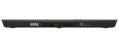 In addition to its innovative performance features, the Korg i3 offers generous rear-panel connectivity to handle any situation. When not running on battery power, the i3 can be connected to an AC power source using the included adapter. There are two 1/4″ outputs (Left/Mono and Right) for audio monitoring, in addition to a 3.5mm stereo headphone jack. A 3.5mm audio input jack is also provided. A 1/4″ foot controller jack is provided, with the function of the footswitch or expression pedal definable in settings. A MIDI output jack sends note and timing data from the i3 to your other MIDI-equipped hardware. Two USB ports are provided: Use the TO HOST USB port to connect the i3 to your Mac or PC; the TO DEVICE USB for saving and loading data and songs to and from a USB flash drive.