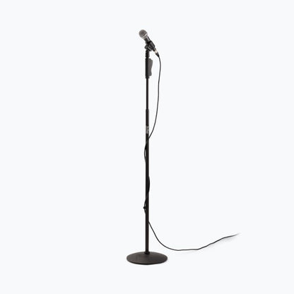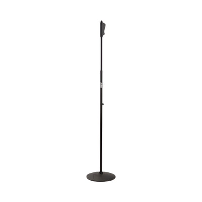 The MS9510 Production-Grade One-Handed Mic Stand with Round Base features a specialized clutch that enables adjustment of the overall stand height using only one hand. The clutch, which releases when squeezed and locks automatically when released, is attached to the upper shaft for quick, easy height adjustments. The 6 lb. round base delivers outstanding balance and stability while rubber pad prevents sliding to keep the stand firmly in place. With its black powder-coat finish that resists chips and scratches, this versatile accessory will remain looking fresh while adding to a professional presentation in any venue, recording studio, or streaming setup.