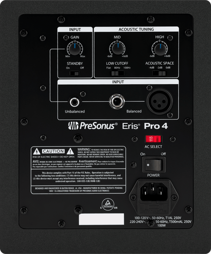 Acoustic tuning controls let you configure the Eris Pro 4 for your room and three-way Acoustic Space tuning can compensate for the effects of speaker placement against a wall or in a corner.