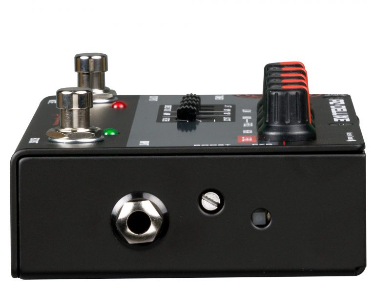 The PZ-Deluxe is a studio quality instrument preamp in a compact pedal for live stage use, with tone-shaping EQ controls and built-in boost & mute footswitches.