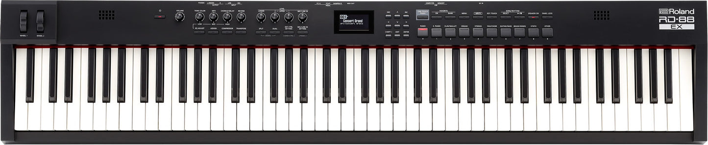 The RD-88 EX delivers a premium RD stage piano experience with expanded sounds and supreme playability. Perform at the highest level with SuperNATURAL and ZEN-Core engines and our expressive PHA-4 hammer-action keyboard. Freely combine internal sounds with computer-based virtual instruments. And perform anywhere with the portable design and room-filling stereo speaker system.