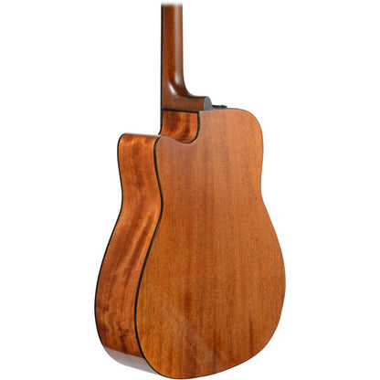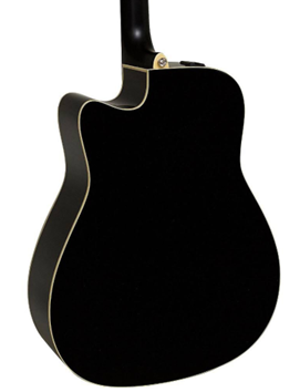 The FGX800C has a nato neck with a smooth matte finish for ease in playing and is equipped with a set of chrome die-cast tuners on the headstock. The fingerboard and bridge are both made of rosewood, while the nut and saddle are made from urea. Additional features include black ABS bridge pins to secure the strings, black body binding, white and black soundhole inlay, and a tortoise-patterned pickguard.